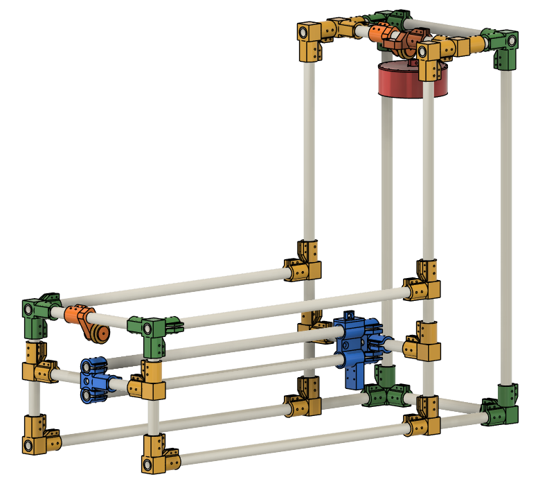 The Scrambler Launcher below is a basic PVC pipe launcher. The frame can be assembled using standard PVC pipe fittings or the 3D printed fittings. The printed fittings do not require glue which makes this easier to modify or repair. The estimated cost of this launcher is from $40 to $60 (USD) depending on parts selected. Modifications are recommended to achieve the best performance. The launcher shown is a starting point.